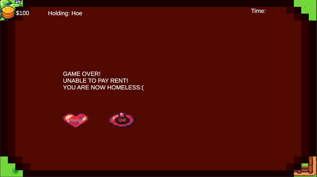 10 Days to Pay. 10 Days to Survive. You have a hoe, a few seeds, and a landlord who doesn't care about your harvest. Can you turn a profit before the rent collector knocks?"